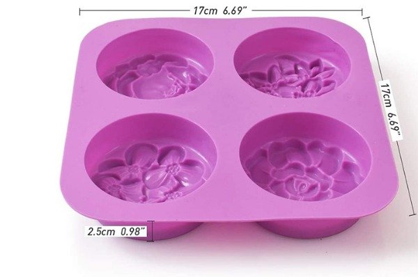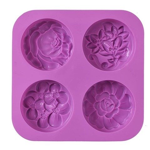 Molde de silicona para hacer 4 jabones redondos con relieve de flores