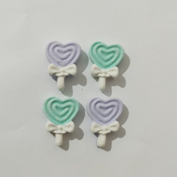 Aplique en Porcelana Fría - Golosina Chupetín Corazón x 4u