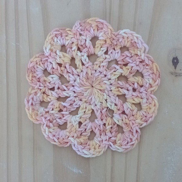 Posa vasos a Crochet 13 cm - Matizada Tonos Naranja y Rosa