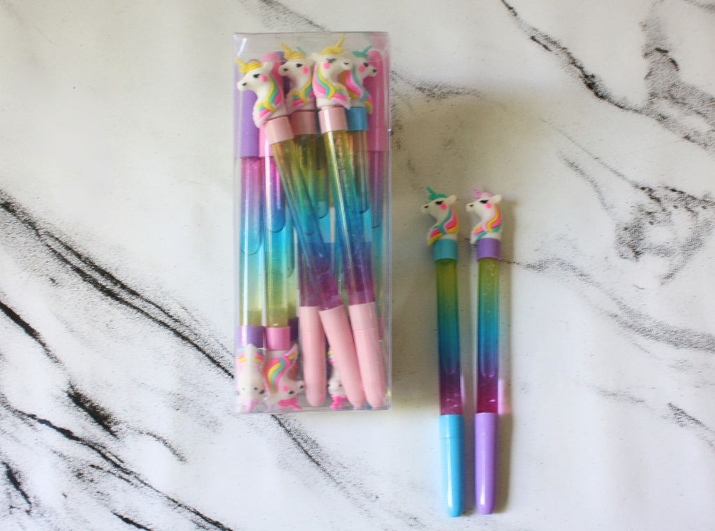 Lapicera con Unicornio y Brillos Color Azul x unidad