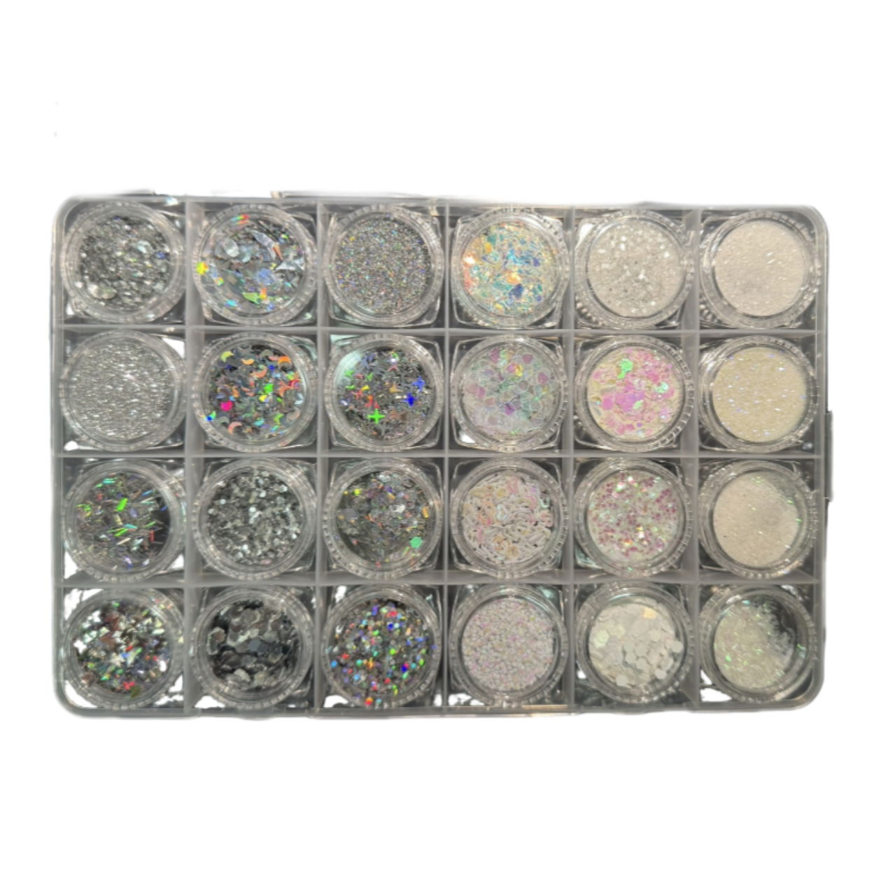 Set 24 Glitter y Brillos - Degrade entre Plateado y Blanco